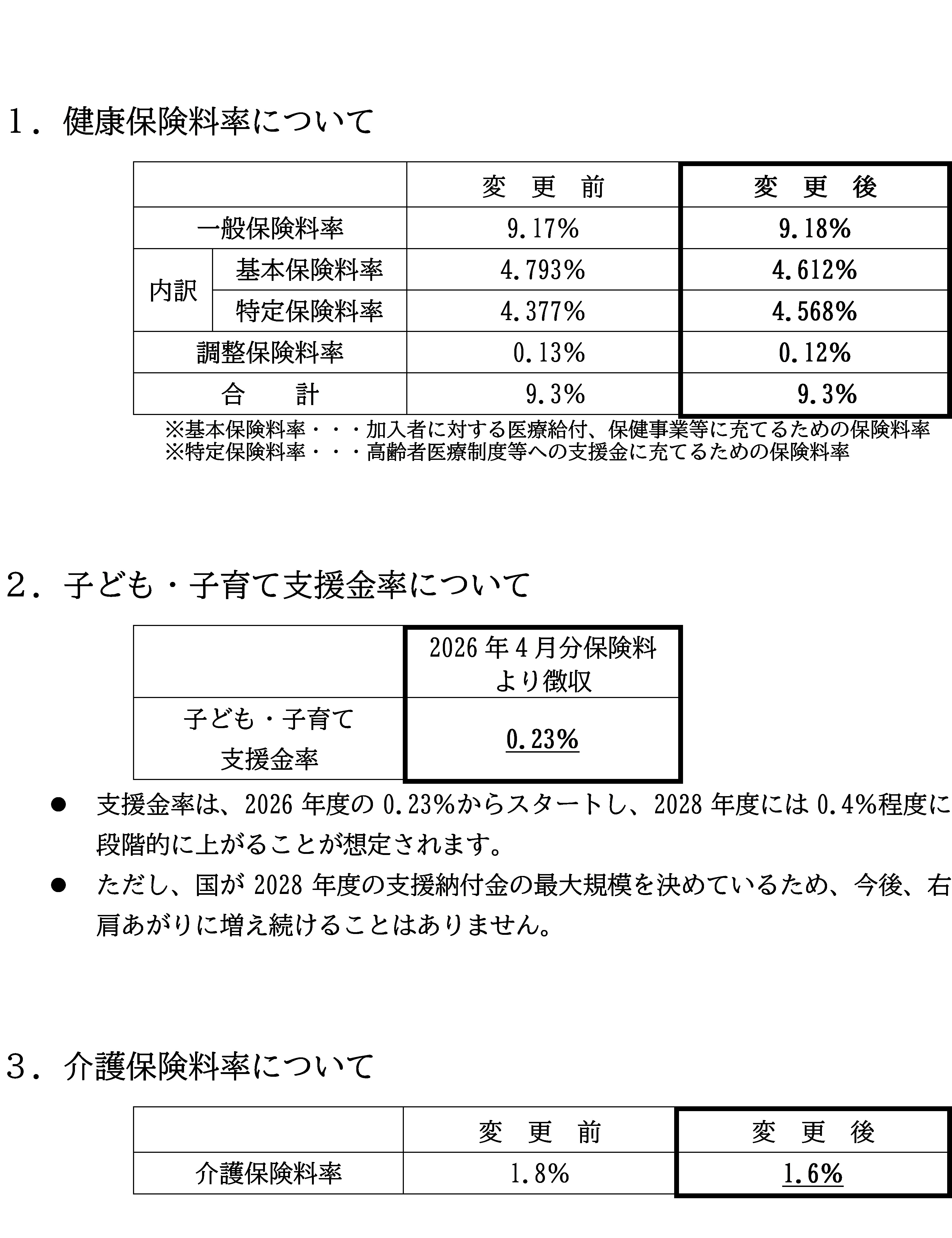 2026年度 健康保険料率・介護保険料率について および 子ども・子育て支援金制度の開始について